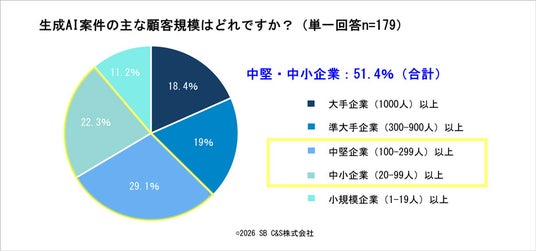 ・生成AI案件の主な顧客層は「中堅企業(100~299名)」「中小企業(20~99名)」が過半数