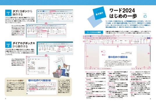 本書の冒頭では、ワードの起動・終了・データ保存から説明しており、はじめてワードを触る人でも迷わず順を追って学ぶことができます。さらに、ワード特有のページ設定の手順や文字入力のコツなどもわかりやすく解説しています。
