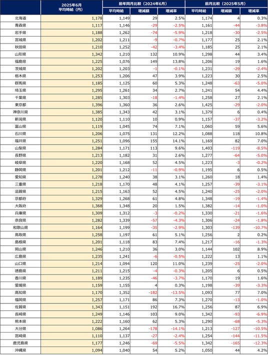 全国・前年同月比 時給上昇額TOP3(2025年6月度)
