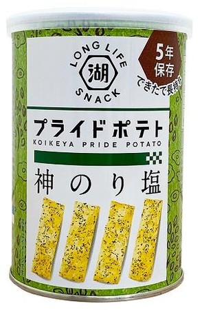 日ごろから食べなれているポテトチップスの味わいを備蓄もできる長期保存可能な缶仕様に。唐辛子とごま油がのりの香りを引き立てます。(製造から5年保存)