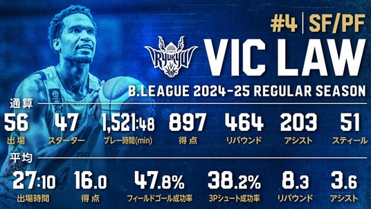 本日5月30日(金)に開催された「りそなグループ B.LEAGUE 2024-25シーズン」の年間表彰式「B.LEAGUE AWARD SHOW 2024-25」にて、#4 ヴィック・ロー選手がレギュラーシーズンベストファイブに輝きました。#4 ロー選手は初受賞となり、キングスからのベストファイブ選出は3シーズンぶり2人目となります。