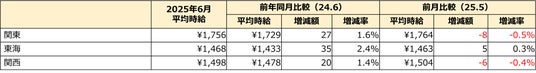 - 三大都市圏の平均時給、34ヵ月連続で前年同月を上回る。