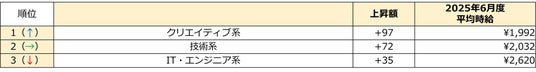 6月度の職種別/前年同月比 時給上昇額ランキング