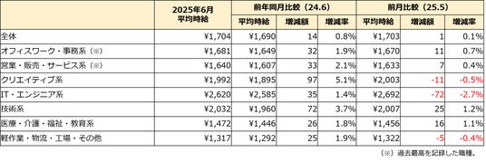 - オフィス系、サービス系で2ヵ月連続の過去最高時給を記録。