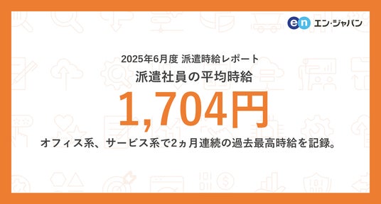 エン・ジャパン株式会社(本社:東京都新宿区、代表取締役会長兼社長:越智通勝)が運営する日本最大級の派遣のお仕事探しサイト『エン派遣』(https://haken.en-japan.com/)では、サイトに掲載されたすべての職種(※)の求人情報をエリア別(※)に集計し、募集時の平均時給分析を行なっています。2025年6月度の集計結果がまとまりましたので、お知らせします。 ※『エン派遣』上で分類されている職種、エリア