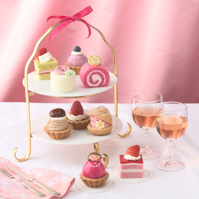 「母の日ベリーセレクション(9個入)」はタルトにモンブラン、ロールケーキなど、かわいいプチケーキのアソート。花束がデザインされた専用BOX入りでギフトにぴったり。「プリンセス」の名が付いた2種類のプチデコレーションは、花びらのように重ねたクリームが華やか。チョコ好きのお母さんには、ロッテの「ガーナチョコレート」を使用した「<ガーナ>リッチチョコケーキ」や「スフレワッフル(ガーナ)」もおすすめです。
