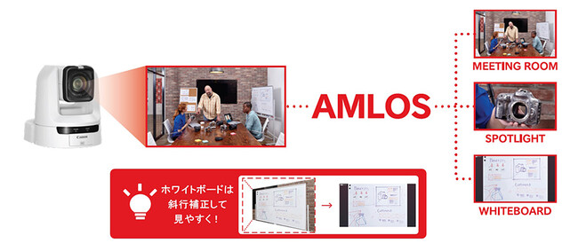 キヤノンマーケティングジャパン株式会社は、キヤノンUSA(Canon U.S.A., Inc. 住所:アメリカ ニューヨーク州メルヴィル 社長:小川 一登)が開発した、リモートカメラ1台※1でオンライン会議に参加するリモート参加者に複数の視点を提供できるビデオ会議ソリューション“AMLOS(アムロス)”の日本国内でのテストマーケティングを開始します。国内展示会への出展やユーザーヒアリングを通じた顧客ニーズの調査を踏まえ、2024年の日本国内での販売開始を目指します。キヤノンが培ってきた光学・画像処理技術を生かした“AMLOS”により、オンラインビデオコミュニケーション市場に新たなソリューションを提供します。