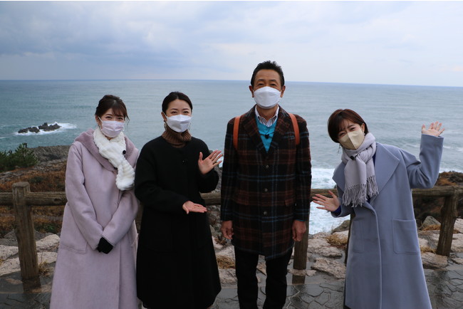 旅の前半は3人娘と福井県の東尋坊からスタート。自然が作りだした、スリル満点の迫力ある断崖絶壁からの絶景を楽しみます。さらに商店街で焼き立ての海の幸やカニの甲羅酒をいただきます。