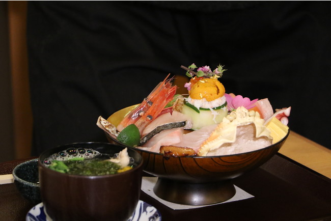 まずは「金沢市民の台所」として親しまれてきた近江町市場で、SNS映えすると評判の「最強丼」をいただきます。15種類も魚介類が盛られた丼に2人も思わず写真撮影。