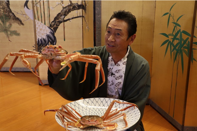 その後一行は芦原温泉へ。老舗旅館でカニ尽くしの料理をいただきます。