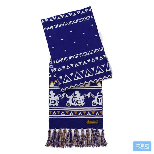 バイクに乗った志摩リンをジャガード織りで表現した厚手で肌触り柔らかな、バイクの寒さ対策などにもお薦めのマフラーに仕上げました。