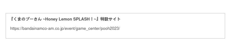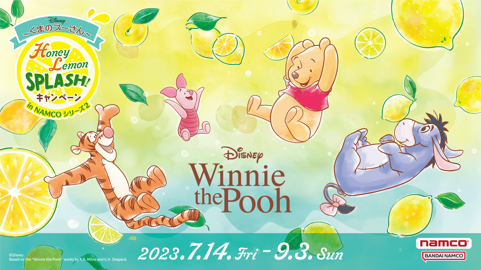 株式会社バンダイナムコアミューズメントは、ナムコ限定のくまのプーさん景品が登場するキャンペーン『くまのプーさん ~Honey Lemon SPLASH!~』を、2023年7月14日(金)から9月3日(日)まで、全国約200店舗の直営アミューズメント施設「namco」とネットクレーンモール「とるモ」で開催します。