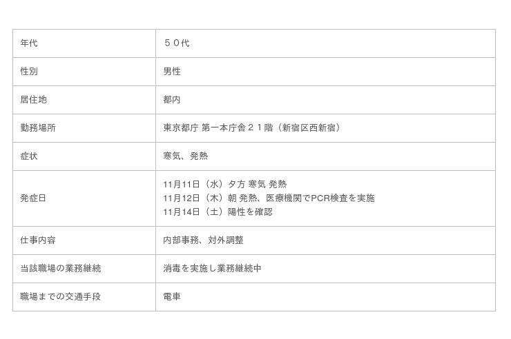 東京都産業労働局に所属する職員1名が、新型コロナウイルスに感染したことが確認されたので、以下のとおり、お知らせします。
