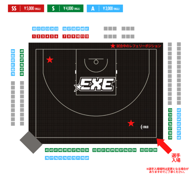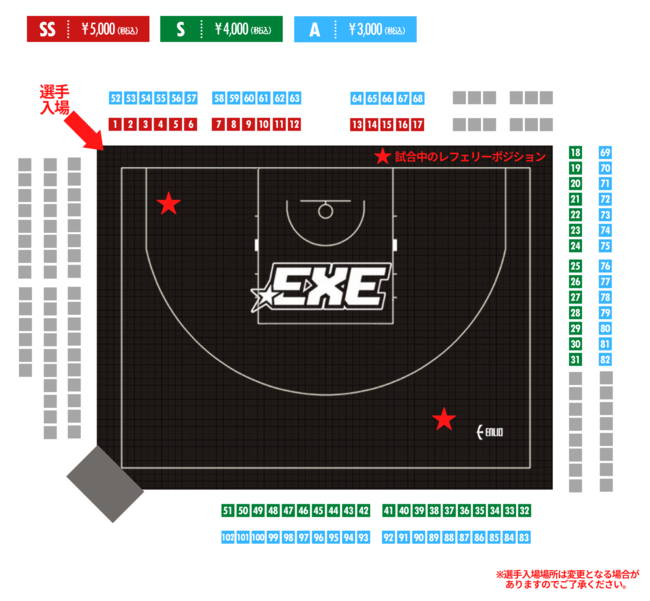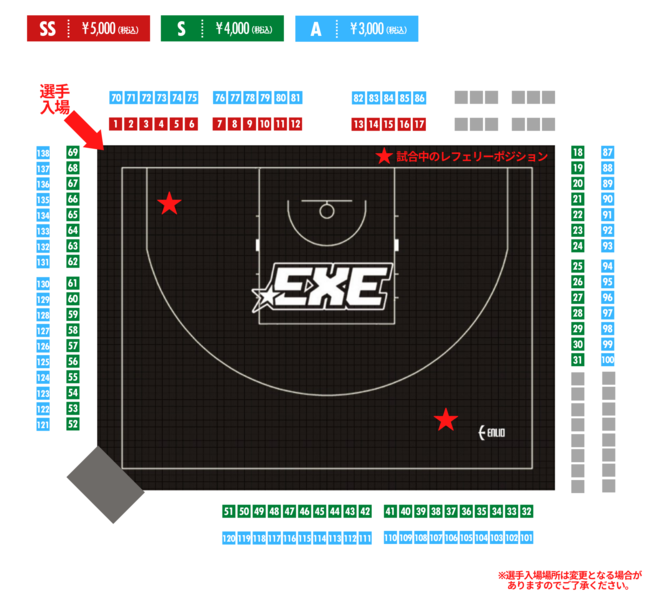チケットをご購入いただきますと、ご着席の上、コート近くで迫力あるプレーがお楽しみいただけますので、ぜひチケットをお買い求めの上、ご観戦ください。