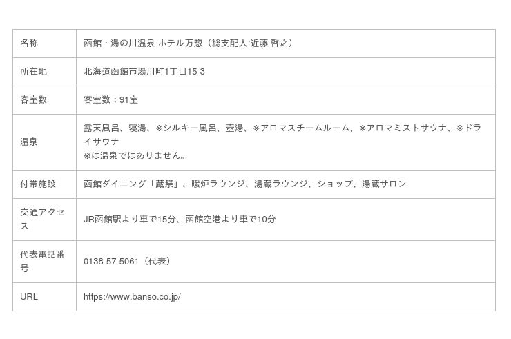 2. 「函館・湯の川温泉 ホテル万惣」概要