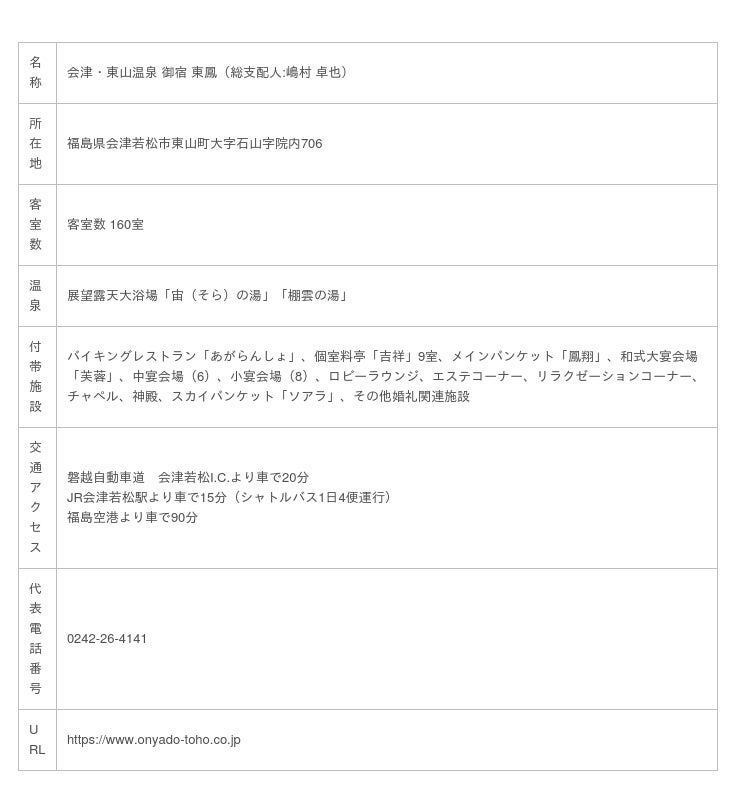 3. 「会津・東山温泉 御宿 東鳳」概要