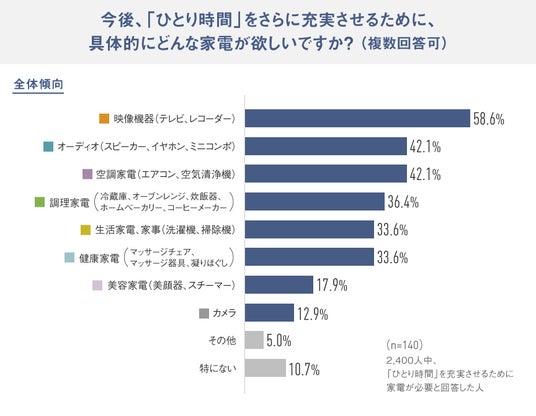また、「ひとり時間」をさらに充実させるための家電として、映像機器やオーディオ機器などのエンタメを楽しむアイテムの他に、調理家電へのニーズがあることもわかりました。