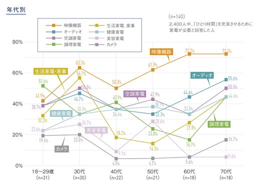 ●18~29歳では「調理家電」や「カメラ」など創作につながる家電