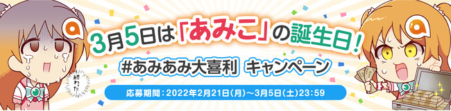 大網株式会社(本社・東京都文京区)は、自社が運営するホビーショップ「あみあみ」のイメージキャラクター『あみこ』が3月5日に誕生日を迎えるのを記念しまして、『#あみあみ大喜利 キャンペーン』を開催いたします。