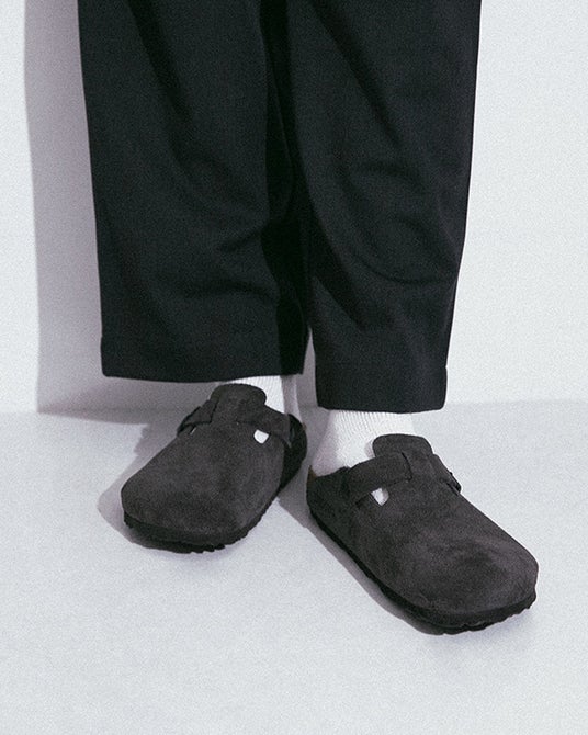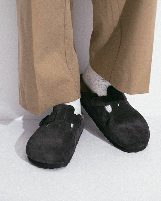 BIRKENSTOCKお馴染みの、洗練されたフォルムが魅力的なBostonモデル。このモデルには柔らかく肌触りの良いベロアレザーを使用しています。ベルトを調節し、自由にフィット感を調整できます。アッパーにはVELVET GREYのベロアレザーをあしらうことで落ち着いた上品な印象に。カジュアルなパンツはもちろん、キレイめなアイテムとも合わせやすいカラーの一足です。