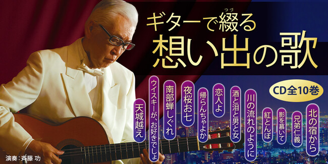 株式会社ユーキャンは2022年11月、CD全集『ギターで綴る 想い出の歌』の販売を開始しました。昭和・平成の演歌や歌謡曲などのヒット曲、全180曲をギターの名手、斉藤功氏が優しい爪弾きでお届けいたします。人生を共に歩んできた素晴らしい名曲の数々を、しっとりと柔らかなギターの調べでお楽しみいただける音楽コレクションです。