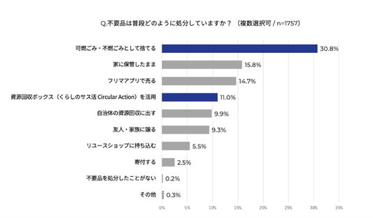 一方で、不要品の処分方法としては依然としてごみとして廃棄しているケースも多く、「捨てる」行動から「循環する」行動への転換に向けては、さらなる利便性向上が必要であることが示されました。
