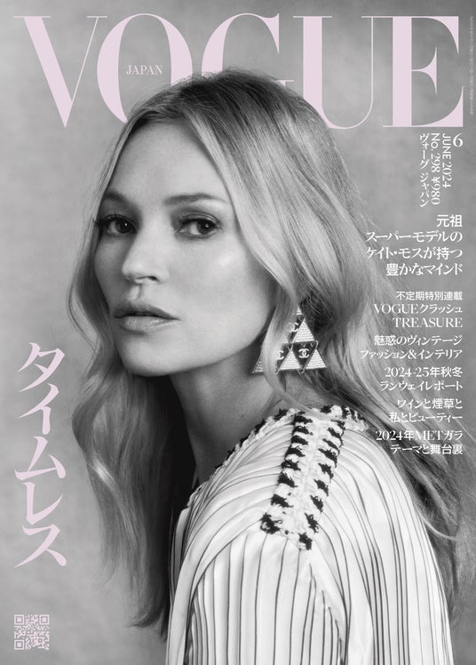 「タイムレス」をテーマに掲げた今号は、変化を感じさせない輝きにフォーカスします。表紙を飾るのは、元祖スーパーモデルの代表格である、ケイト・モス。時を超越した“顔”として、まさに唯一無二といえる彼女が考える、生きる上で大切にしている指針や価値観、これまでの軌跡など自身の心の内を赤裸々に語ったインタビューは必読です。また、第2弾を迎えた不定期連載「VOGUEクラッシュ」ではグローバルボーイズグループのTREASUREが登場。創造力を刺激し、より輝くための「宝物」を語ってもらいました。メンバーそれぞれが持つこだわりとカリスマ性に注目です。さらに毎年恒例のMETガラ特集や、ファッションに精通している俳優の二階堂ふみとモデルのemmaがレコメンドするヴィンテージショップ、Netflixで配信中の『シティーハンター』で主演を務める、俳優の鈴木亮平のインタビューなど多様なカルチャーをお届けします。