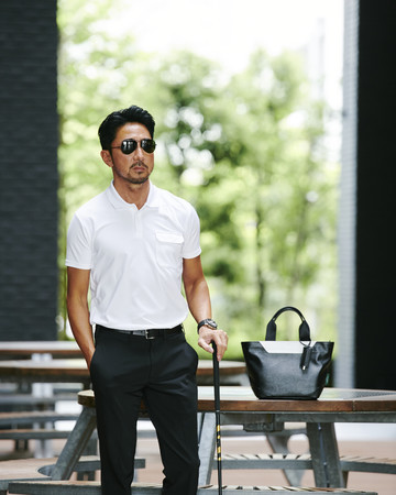「ただし、ゴルフだからといって急にウエアやギアを派手にしたりするのではなく、普段、都会生活のなかで身につけている自分のスタイルをそのままゴルフ場に持ち込みたいと考えました」。そこから生まれたのが、干場さんのスタイルを象徴するシンプルなモノトーンのコレクションです。「足し算のデザインをせず、むしろ削ぎ落とすことによってそのものの良さを浮き彫りにするのが僕のスタイル」という哲学を反映したアイテムがラインナップ。