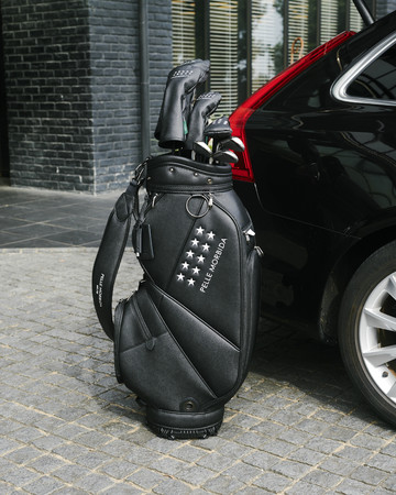 キャディバッグからボストンバッグ、ポーチ、カートトートにいたるまで、すべてクールなブラックをベースに“タッチ・オブ・ホワイト”の絶妙な配色と、10周年のアイコン“テンスターズ”を効かせたモダンで都会的な表情が魅力のアイテム。まさに干場氏の変わらぬ美意識と、柔軟な時代感覚を代弁するゴルフコレクションが完成しました。