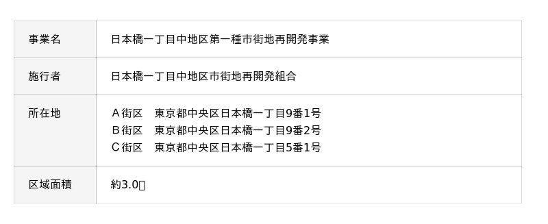 本事業は、日本橋川周辺の再開発一帯エリア「日本橋リバーウォーク」の第一弾プロジェクトとして、日本橋川という都心では希少な水辺空間を活かし、川と街が一体となった新たな都市体験を創出します。エリア最大級のフロアプレートを有するオフィス、上質で洗練された商業施設、ヒルトン最上級ラグジュアリーホテル「ウォルドーフ・アストリア東京日本橋」、「ウォルドーフ・アストリア・ホテルズ&リゾーツ」の名を冠した賃貸住宅「ウォルドーフ・アストリア・レジデンス東京日本橋」、約1,600人を収容可能なホールを有する都心最大規模のMICE施設、といった多様な都市機能を有した大規模ミクストユース開発が誕生します。