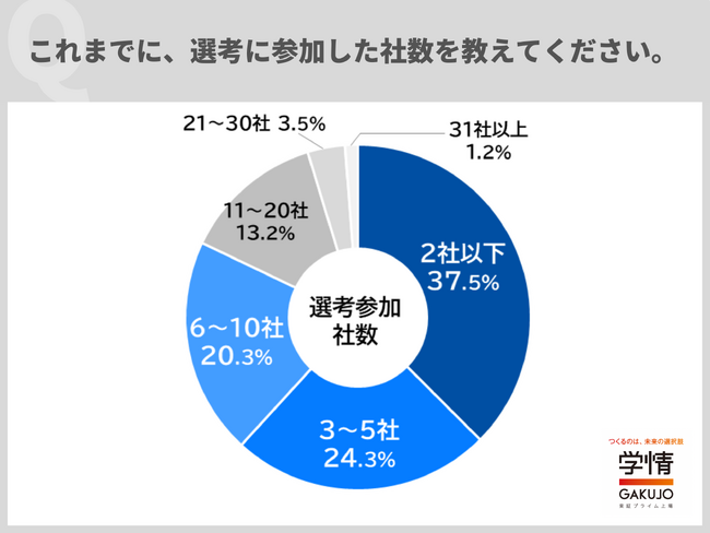 (3)選考参加社数「2社以下」と回答した学生が37.5%