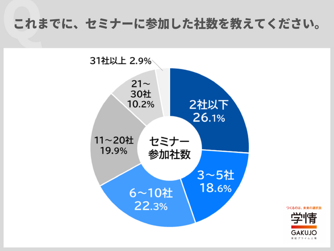 (2)セミナー参加社数「10社以下」と回答した学生が7割に迫る