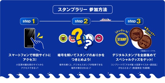 特設サイトにアクセスしていただき、小笠原にまつわる暗号を解いて地図を入手したのち、都内4箇所に設置された秘密の場所にあるポスターのQRコードを読み取ることで、デジタルスタンプを取得。デジタルスタンプを全部集めると「小笠原マイスター認定証」のプレゼントに応募することができます。