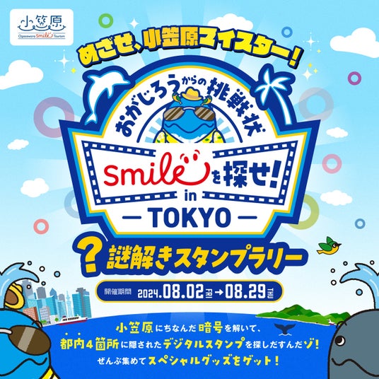 参加型のエンターテインメントを入口に「Ogasawara SMILE Tourism」を体験してもらう、謎解きスタンプラリー『おがじろうからの挑戦状 SMILEを探せ!in TOKYO』を展開いたします。