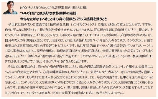 9月15日(月・祝)は敬老の日 大切な人にケアが必要になるときのこと、一緒に考えてみませんか? ~となりのかいご 代表理事 川内 潤さんに聞く、「不安を和らげる、気持ちとスキルの備え」~