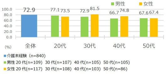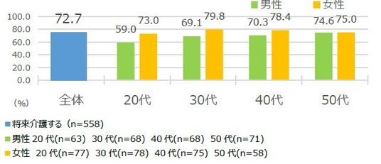 介護未経験の働く男女の約7割が「将来、自分は介護をすることになる」と予想