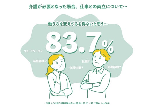 仕事と介護を両立することになったら、「働き方を変えざるを得ないと思う」83.7%