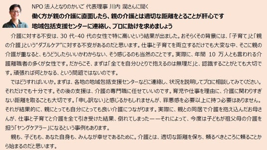 仕事と介護の両立:介護未経験者の85.8%が「仕事と介護の両立ができるか不安」