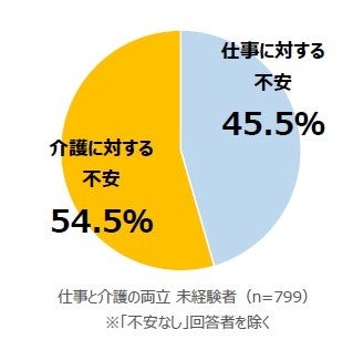 両立するときの不安度は「介護」の方が高い 仕事45.5%:介護54.5%
