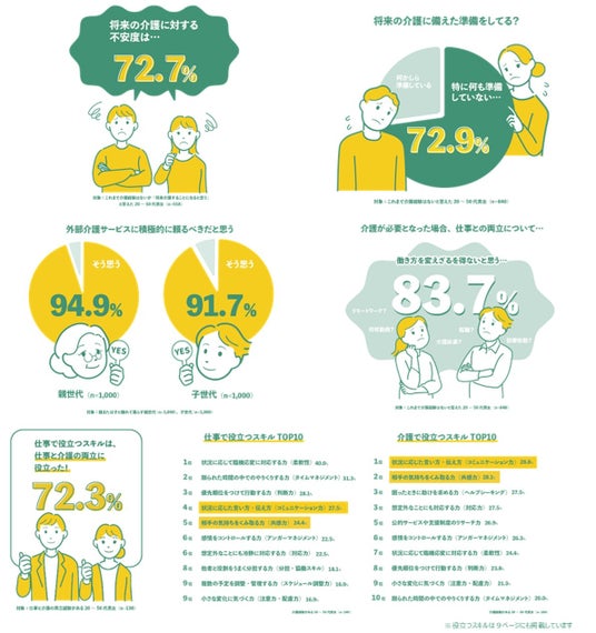 働く人の多くが働きながら介護をすることに不安を覚えていますが、仕事で役立つスキルは、仕事と介護の両立にも役立つことが明らかになりました。