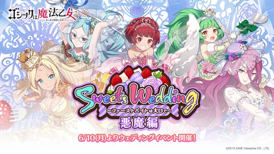 株式会社ケイブ(本社:東京都目黒区、代表取締役社長:秋田英好、JASDAQ コード:3760)が配信中のシューティングゲームアプリ『ゴシックは魔法乙女~さっさと契約しなさい!~』(『ごまおつ』)におきまして、6月10日(月)よりウェディングイベント『スイーツウェディング~ファーストバイトは大口で~』を開始いたしました。