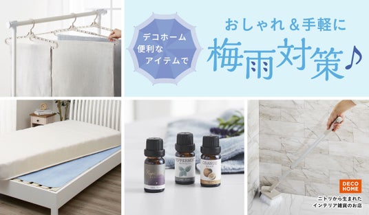 この季節になると、雨や湿気による部屋のジメジメや洗濯物の乾きにくさ、カビやにおいなど、悩みが増えてきますよね。デコホームでは、そんな梅雨の時期をもっと快適に過ごしていただけるよう、お客様の生活に役立つアイテムを特集しています。洗濯や掃除がラクになる便利アイテムや寝具まわりの除湿アイテム、気分をリフレッシュできるアイテムまで、様々なお悩みを解決する対策方法をご提案しております。ぜひ、特集ページをご覧ください。