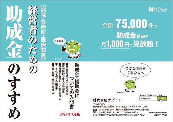 小冊子【病院・診療所・医療関連「経営者のための助成金のすすめ」】をリリースします。