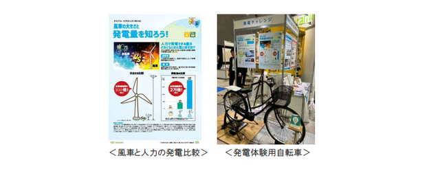 また、今回初めて「自転車発電と風車で対決してみよう」と題して、自転車での発電が体験できるコーナーを設け、参加者の方に発電や風車についてより身近に感じてもらう取り組みも行いました。