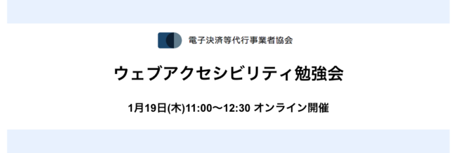 1月19日(木)開催の、一般社団法人 電子決済等代行事業者協会主催「ウェブアクセシビリティ勉強会」にfreee株式会社 UXリサーチャー・デザイナー 伊原力也とソフトウェアエンジニア 中根雅文が登壇します。
