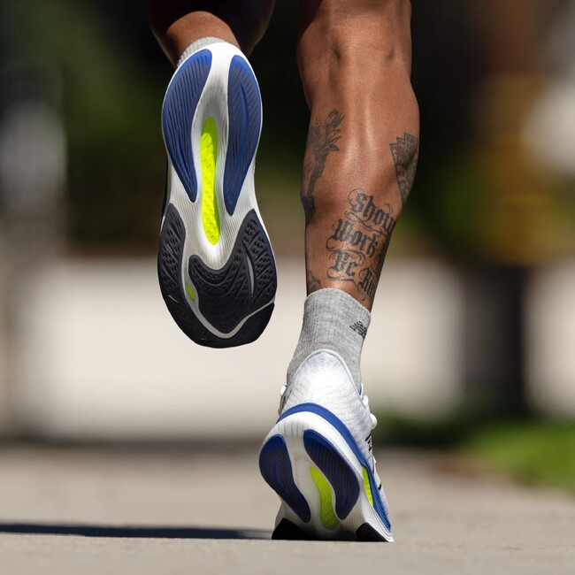 反発弾性に優れたFuelCellミッドソールにTPUプレートを内蔵。従来よりソフトなコンパウンド配合のFuelCellと、カーボンプレートよりしなやかなTPUプレートは、身体の負担がかかりにくいように考慮。