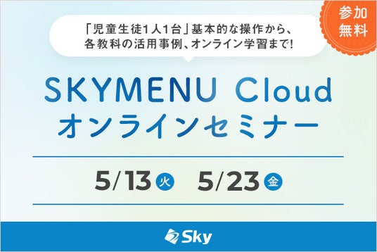 Sky株式会社では、児童生徒1人1台の学習活動端末支援Webシステム「SKYMENU Cloud」の基本的な使い方や教科指導、オンライン学習における活用例のご紹介など、毎月テーマを設けてオンラインセミナーを開催しています。
