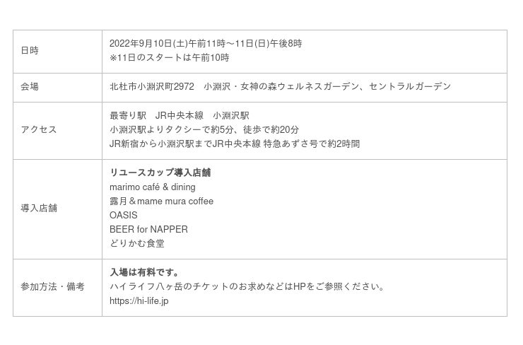 2022年9月10日(土)午前11時~「ハイライフ八ヶ岳2022」
