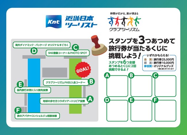 ブース内の各体験ゾーンでスタンプを集めると、旅行券やオリジナルグッズが当たる抽選会にご参加いただけます。*6つの体験ゾーンで3つ以上のスタンプを集めて、抽選会に1回ご参加いただけます。6つスタンプを集めると、抽選会に2回参加できます。