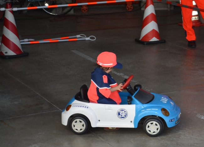 JAFの子ども制服を着て交通ルールをしっかり勉強したら、駐車場に設けられたコースを